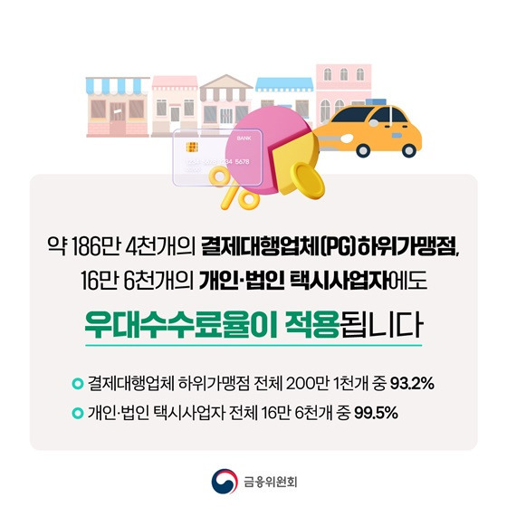 즉, 편의점·음식점 같은 골목 상권부터 택시 업계까지 대부분의 소상공인이 우대 혜택을 보게 됩니다.