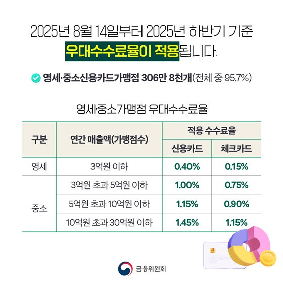 2025년 하반기부터는 영세·중소 신용카드 가맹점을 대상으로 한 우대수수료율 적용이 본격 시행됩니다.
