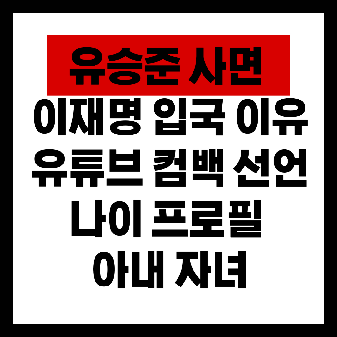 오늘은 유승준의 유튜브 컴백 영상, 입국 논란의 배경, 프로필 및 가족 정보를 총정리해드립니다.