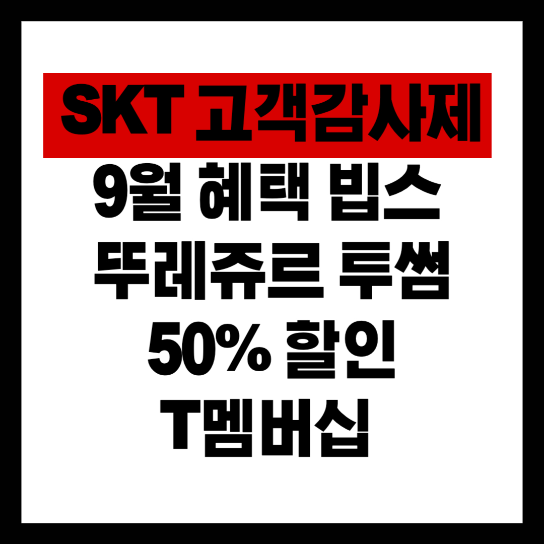 바로 SKT 고객감사제 9월 혜택으로, 빕스, 뚜레쥬르, 투썸플레이스 등 인기 브랜드에서 50% 할인 쿠폰을 받을 수 있습니다.